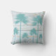 O travesseiro do tema da casa de praia que caracteriza uma praia rústica resistiu à madeira com design azul da palmeira da cerceta. Esta praia rústica inspirou a palmeira e o deisgn de madeira resistido é repetido em ambos lado do travesseiro decorativo. Um travesseiro decorativo temático da praia à moda para o fundamento, a área de assento, o sofá ou o pátio.