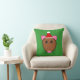 Este travesseiro incrível apresenta uma engraçada caricatura de um rato de Natal com grandes olhos redondos, orelhas cor-de-rosa, um nariz rosa pequeno e sussurros fofinhos e giros. O rato está vestindo um chapéu de Papai Noel vermelho e branco pronto para o Natal.