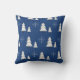 Travesseiro decorativo de Natal azul com pinheiros brancos e flocos de neve