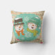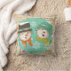 Snowmen Dots e travesseiro de férias da Tipografia, tão bonito e colorido, apresentam um texto tipográfico sobre fundo branco com um círculo azul aqua com pontos brancos e cada lado tem um casal sorridente de boné, cachecol, nariz de cenoura e flocos de neve!