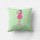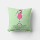 Travesseiro decorativo de sotaque feminino doce, com um anjo de arte popular giro, a rosa, segurando uma flor, contra um fundo verde-claro. Uma oração ao seu anjo guardião, em texto personalizado preto, está pronto para personalizar para ler o que você quer. Boa ideia de presente para qualquer garota.