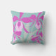 Um travesseiro floral ousado em tons de roxo sobre um fundo aqua. Impressão gráfico original de uma orquídea sipolide Cattleya estilizada por Sarah Trett. Pareceria excelente em uma sala de verão ou quarto.