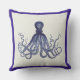 Ilustração da safra de um polvo azul náutico colorido e colocado num pergaminho de fundo colorido com uma borda azul indigo. Travesseiro exterior perfeito para o seu jardim, baralho ou móveis de pátio.