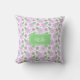 Um travesseiro decorativo construído com um padrão de flor lilás. Personalize o travesseiro com o seu próprio texto, cor de fundo, entre outras opções.