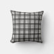 Um travesseiro decorativo com um padrão de xadrez original preto e branco, inspirado em glen, com faixas finas.