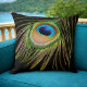 Na moda travesseiro decorativo preto com coloração de penas de pavão.
