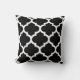 Travesseiro preto e branco de Quatrefoil. Feito nos travesseiros decorativos decorativos dos EUA com um teste padrão geométrico do quatrefoil em cores contemporâneas.