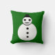 Este incrível travesseiro apresenta um sorridente boneco de neve de Natal branco com botões pretos e um chapéu de cima. Ele parece um homem legal e adoraria ajudá-lo a espalhar a alegria do Natal este ano. O fundo é uma sombra festiva de verde.