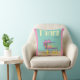 Esta travesseiro é excelente para mostrar seu amor pela vintage Miami. Ele apresenta uma torre de salva-vidas rosa no estilo de Arte Deco. O travesseiro tem um fundo cor-de-rosa nos lados e a parte traseira do travesseiro é cor-de-rosa com listras amarelas.
