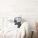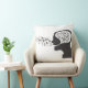 Um travesseiro redondo com um retrato artístico preto-e-branco em negrito com um detalhe de assinatura. Perfeito por adicionar um toque moderno e personalizado à decoração doméstica.