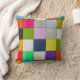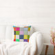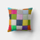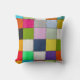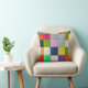 Um travesseiro decorativo de patchwork com uma grade de quadrados coloridos em rosa, verde, azul, amarelo, laranja e cinza. Este travesseiro vibrante adiciona um toque alegre a móveis minimalistas, tornando-o perfeito para salas de estar, cantos de leitura ou interiores aconchegantes. Uma mistura estilosa de conforto e design artístico.