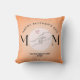 Este design travesseiro é um tributo animador para o Dia das Mães, misturando simplicidade com profundidade emocional. O fundo de pêssego suave dá um tom calmante, enquanto a palavra "MOM" é criativamente desenhada — apresentando uma ilustração das mãos de uma mãe e de um bebê segurando-se gentilmente um ao outro em vez do "O", encerrado em um círculo de rosa claro com um pequeno coração acima, simbolizando amor e conexão. Acima, a frase "Feliz Dia das Mães" escuta graciosamente, e abaixo, a mensagem "Para a Melhor Mãe de Todos".