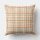 Este travesseiro decorativo caracteriza um design colorido da xadrez em alaranjado, em azul, e o marrom em um fundo de creme. As cores adicionais estão disponíveis em minha loja: www.zazzle.com/foxyboxysolutions.
