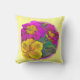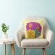 É perfeito um travesseiro decorativo fino, cor-de-rosa floral e trabalho de arte amarelo, para embelezar uma sala interior e dar-lhe um pino de cor primavera.