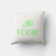 Um elegante e divertido travesseiro decorativo branco que apresenta a saudação francesa para o saudação/ bom dia na frente e adeus na parte de trás, com uma nova e vibrante fonte verde moderna. Aproveite.