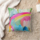 Lindo travesseiro decorativo abstrato arco-íris e presente de inauguração, desenhado por Jo Claire Hall da Groovy Gal Designs.