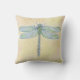 Libélula azul e verde em um travesseiro decorativo quadrado.