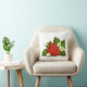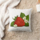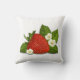 Este travesseiro decorativo lindo que caracteriza a fruta vermelha fresca da morango com folhas do verde e as flores pequenas brancas em um fundo transparente (branco usado na amostra) ou na cor feita sob encomenda do fundo, é o acessório perfeito a ascendente acolhedor todo o espaço e é grande para adicionar a cor a sua decoração da cozinha ou da sala de visitas.