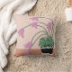 A mão desenhou pote de flores lavandas como travesseiro decorativo. O fundo do travesseiro é bege e castanho claro, o pote é preto e branco e a parte de trás do travesseiro é bege.