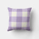 Tecido de Cotton recomendado. Um travesseiro decorativo com um gingham de cor púrpura clara e creme.