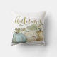 As belas abóboras de aquarelas em tons de azul macio, verde, ouro e marrom em fundo branco são apresentadas neste travesseiro decorativo. A palavra "Outono" está escrita no topo do travesseiro, frente e verso. Coordena-se com os outros designs da Coleção de Abóbora Azul de outono do Compro de Algodão da Vintage Mama.