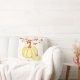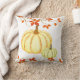 Este travesseiro decorativo é mostrado em folhas de outono e impressão de abóboras com cor branca de fundo. Personalize este travesseiro ou comprar como está.