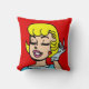 Yowza! Este Travesseiro decorativo de beleza da banda desenhada retrô apresenta uma linda garota loira com lábios cor-de-rosa e lascas escuras em um fundo vermelho. Uma mão luva é visível enquanto ela joga o cabelo amarelo como a flerte que ela é. Vejo você nos jornais engraçados!