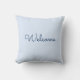 Travesseiro decorativo de boas-vindas, azul bebê. É reversível para um travesseiro azul marinho de boas-vindas. Disponível em diferentes tamanhos e materiais.