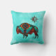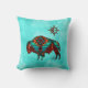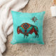 Vestir sua casa com este Travesseiro decorativo de Buffalo Sudoeste. Ele apresenta um Buffalo Sudoeste e Sol em Turquesa, Laranja e Negro... em Turquesa e Fundo Branco! Design de Arte Original Do Artista Kerry Miller!