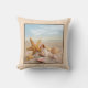 Conchas na praia travesseiro decorativo com fundo marrom reversível. Disponível em tamanhos diferentes.