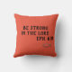 Vermelho, Poliéster, travesseiro decorativo quadrado com citação de Escritura e peixe ilustrado. A citação é do Livro Bíblico dos Ephesianos. O peixe é o símbolo secreto dos primeiros cristãos usados para se identificarem e se reunirem sem perseguição.