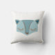 Personalize este travesseiro decorativo de quarto de berçário com um rosto de raposa giro para uma criança com o seu nome. . Disponível em vários tamanhos. Design reversível criado em tons de azul com destaque de borda retangular em um lado. Bonito presente de chá de fraldas ou criança que pode ser coordenado com outros itens de decoração neste design em www.zazzle.com/kidsunique