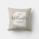 Travesseiro decorativo moderno de fazenda personalizado com seu nome de família dentro do mapa do estado. Fundo de textura da canvas de burlap (nota que os cobrir do travesseiro não são feitos de material burlap). Clique no botão Personalizar para adicionar o seu próprio texto e selecione em todos os nossos estilos de travesseiro para criar o seu único e único design!