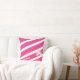 Travesseiro decorativo Pessoal de Stripe Rosa Quente da Árvore Palma Um design moderno brilhante com seu próprio nome pessoal. O nome pode ser excluído se você não quiser. Rosa quente com listras brancas e rosa quente inverso com palmeiras brancas com padrão. Travesseiro de verão moderno e chic.