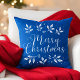 Travesseiro decorativo moderno de roteiro de Feliz Natal. A design apresenta o texto "Feliz Natal" em tipografia branca com groselhas brancas e elementos de destaque espiralados contra um pano de fundo azul. Faz o melhor presente personalizado para você, seus amigos, familiares e até mesmo vizinhos. Temos mais de 35 travesseiros de Natal na nossa coleção que você definitivamente vai amar. Por favor, dê uma olhada e ganhe o melhor presente de Natal com desejos especiais para suas pessoas especiais. Feliz Natal!