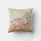 Este elegante travesseiro decorativo de Natal Feliz é a decoração perfeita de Natal. A design apresenta um Feliz Natal vermelho com uma árvore de Natal dourada e caprichosa sobre um fundo de ouro sutil e flocos de neve brancos. Trata-se de um travesseiro decorativo de dois lados, com o mesmo design de ambos os lados.