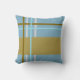 A almofada tem um desenho abstrato de listras tecidas de um lado e é lisa do outro.