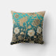 Flores Douradas e brancas com turquesa e design de fundo preto no travesseiro decorativo. CRIADO por AI.