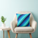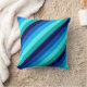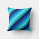 Um travesseiro decorativo de 16" x 16" com um padrão legal de faixas diagonais em azul marinho, azul cobalto, azul-céu, talhe de menta gelada e turquesa leve.