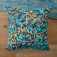 Adicione faísca e pop à sua decoração com este travesseiro. Ele apresenta um padrão gráfico vívido, azul e preto, que é derivado de uma fotografia de hífenes. O travesseiro também tem tons de turquesa, amarelo e rosa.