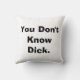O travesseiro decorativo que caracteriza o presidente anterior Richard Nixon com "você não sabe o pau" escrito no reverso.