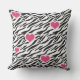 Travesseiro de padrão de zebra engraçado embelezado com corações cor-de-rosa.