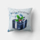 Adicione um pouco de alegria de férias à sua casa com este Travesseiro decorativo de presente de Natal azul festivo. O design travesseiro apresenta uma vibrante prenda de Natal azul adornada com bagas ocas e flocos de neve caindo contra um elegante pergaminho e folhas de fundo. Itens adicionais de presentes e feriados disponíveis com este design também.