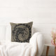 O travesseiro decorativo na moda apresenta uma silhueta circular de dragão centrada num fundo de textura sépia.