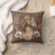 Um belo retrato de um Cavalo da baía é colocado no centro de uma coroa de outono em tons de cinamão marrom, bronzeado e creme. O cavalo e a design de coroa são colocados sobre um fundo marrom médio. Ambos os lados do travesseiro têm a mesma imagem. *Você pode alterar a cor do plano de fundo escolhendo Editar o Design.