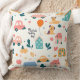 Um travesseiro giro, com ilustrações de cães e carros em um padrão lúdico na frente e no verso. Estilo simples com casas e carros bonitos sobre fundo brilhante, ilustrações coloridas, personagens de desenho animados, bordas moles e detalhes desfocados, formas circulares, linhas lúdicas de desenhos infantis, texto "Seja alegre todos os dias" escrito em fontes cursivas, cores pastéis, blocos de cores planas, saturação alta, brilho alto, atmosfera quente. O quadro geral é cheio de diversão infantil. É alegre e quente.