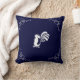 Travesseiro decorativo Decorativo do Galo Azul Um travesseiro de sotaque azul com uma silhueta branca de galo no meio e as elegantes vinhas brancas nos cantos.
