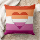 Travesseiro decorativo com a imagem de um coração nas cores da bandeira do orgulho lésbico, num fundo com a bandeira do orgulho lésbico,. Veja na minha loja mais produtos com temas LGBTQ!