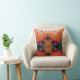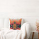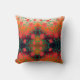 Um travesseiro reversível projetado com um fundo preto sólido que pode ser alterado para qualquer cor, e um impressão vermelho florido com branco na frente que pode ser alterado para qualquer cor.