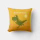 A frente deste Travesseiro decorativo apresenta uma ilustração cartoon do engraçado Dinossauro giro sob o Sol quente. A parte de trás do travesseiro apresenta a floresta Jurássica pré-histórica. As ilustrações são desenhadas nas cores quentes: amarelo, laranja e verde. Excelente adicional à decoração do quarto do seu filho. Você pode personalizar facilmente o nome das crianças usando ferramentas online do Zazzle.